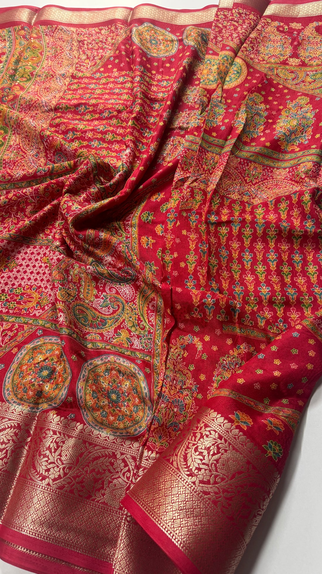❤️ Red Star Butta Khadi Georgette Saree ❤️Experience the royal charm of pure Banarasi-style weaving,...