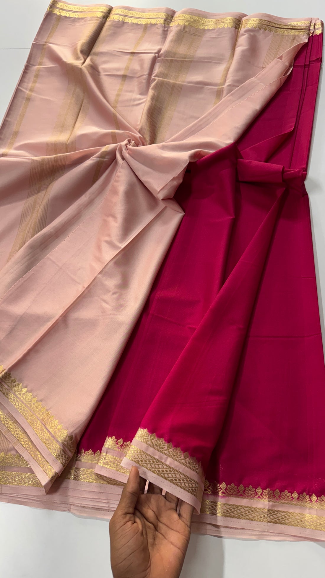 1.5 inch gold zari semi Mysore crepe contrast- VARAHI053