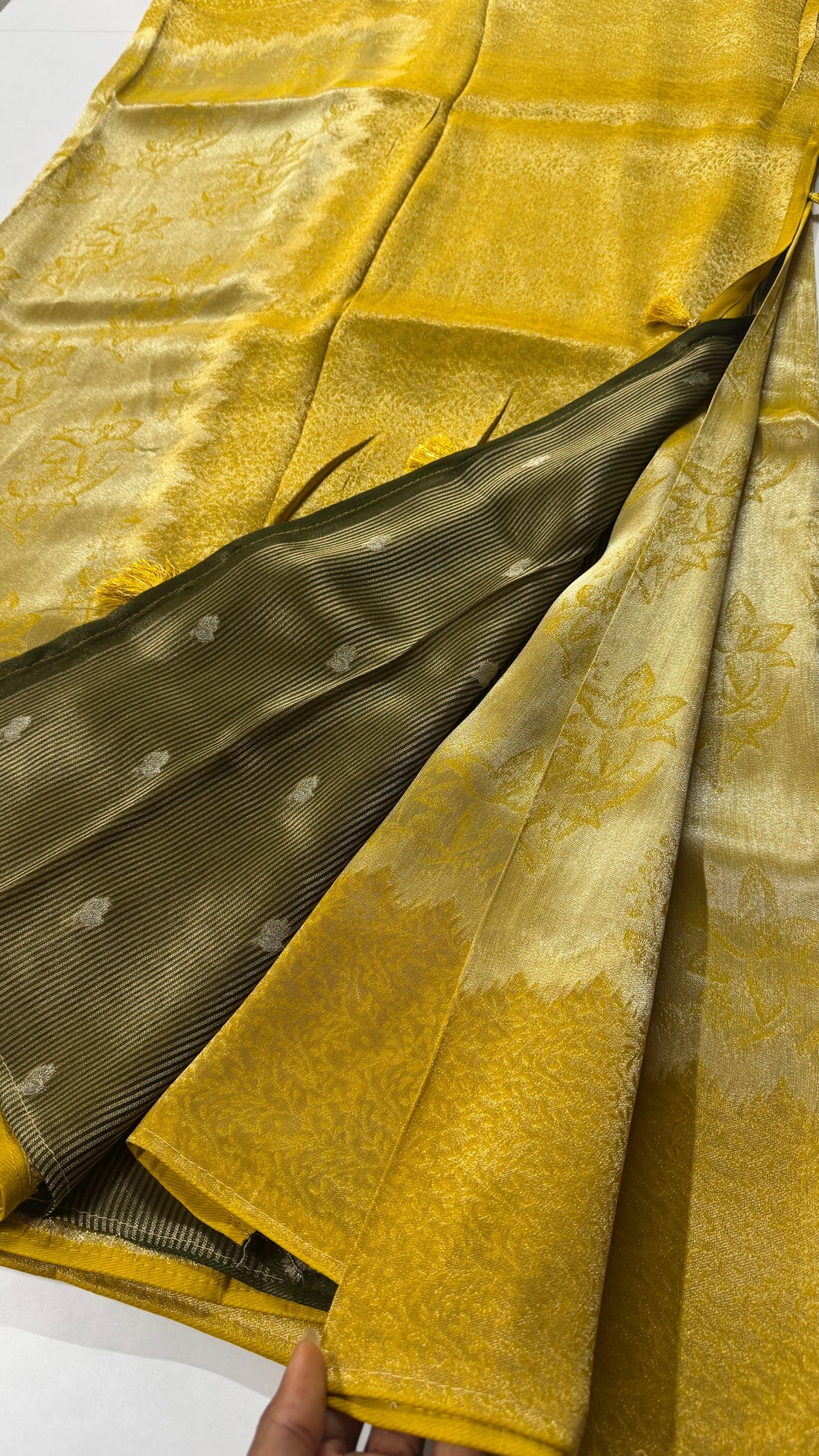 “Where Tradition Meets Glam ✨💛” “Pure viscose saree featuring elegant Meenakari horizontal stripes and intricate...