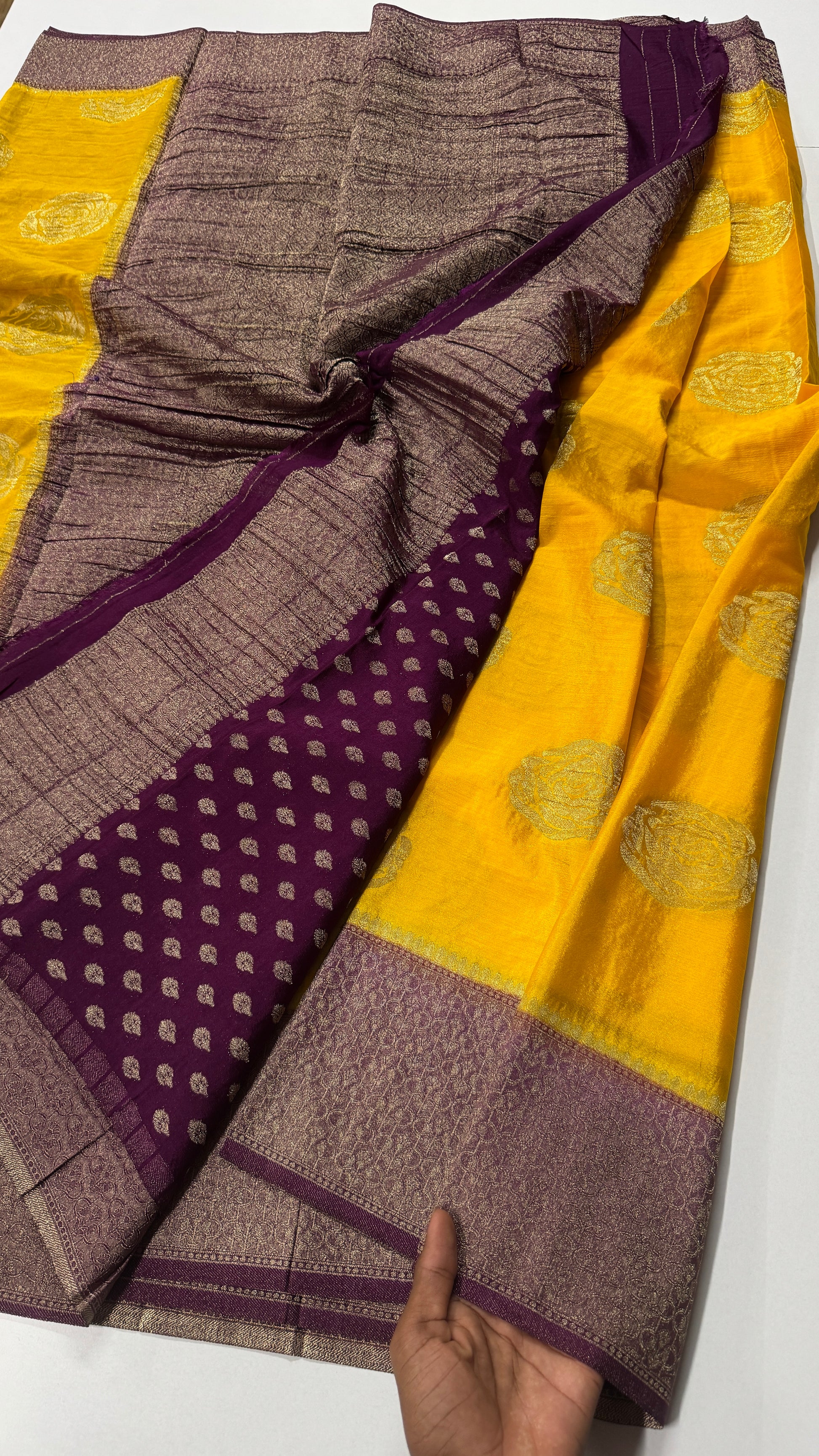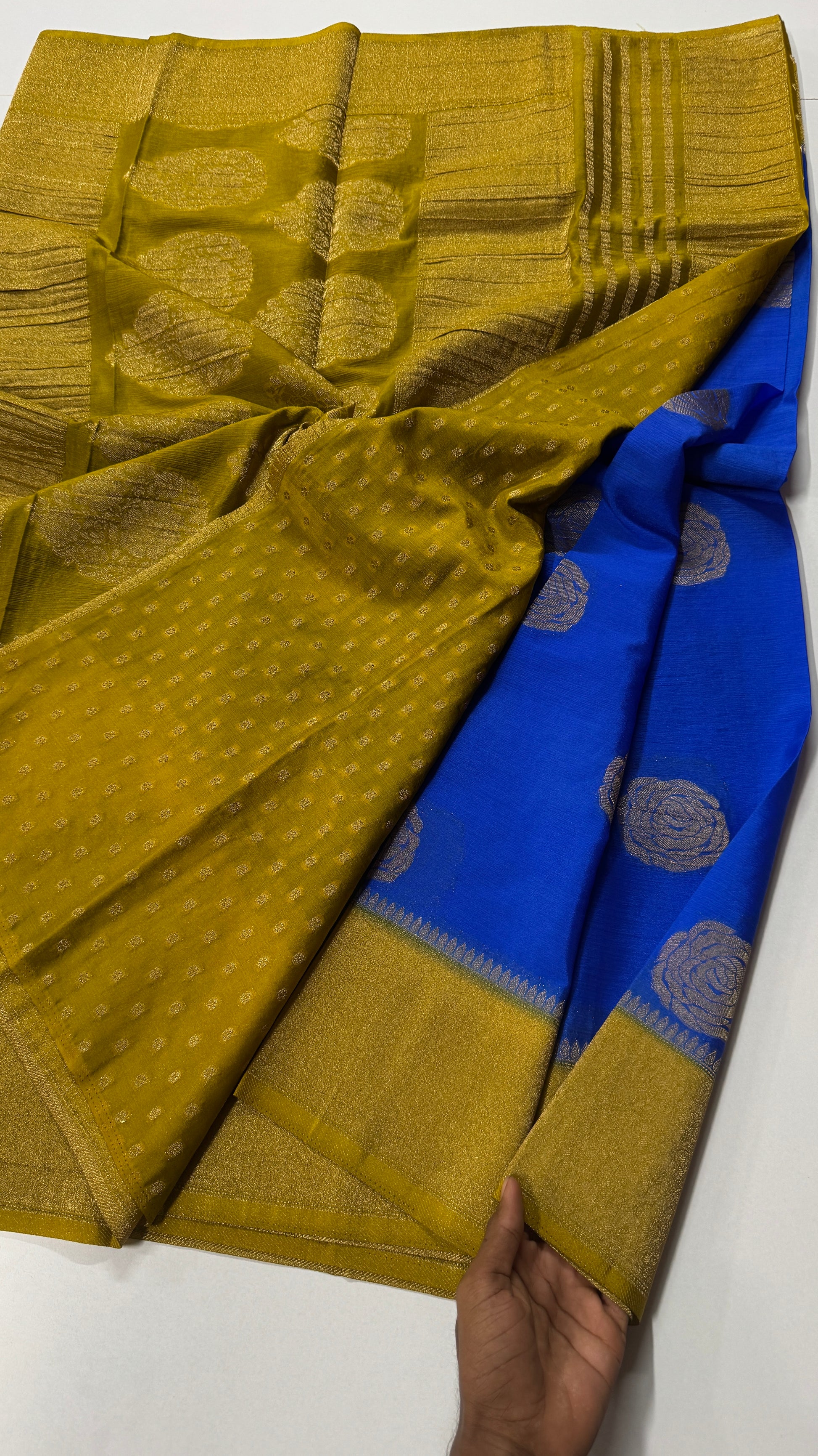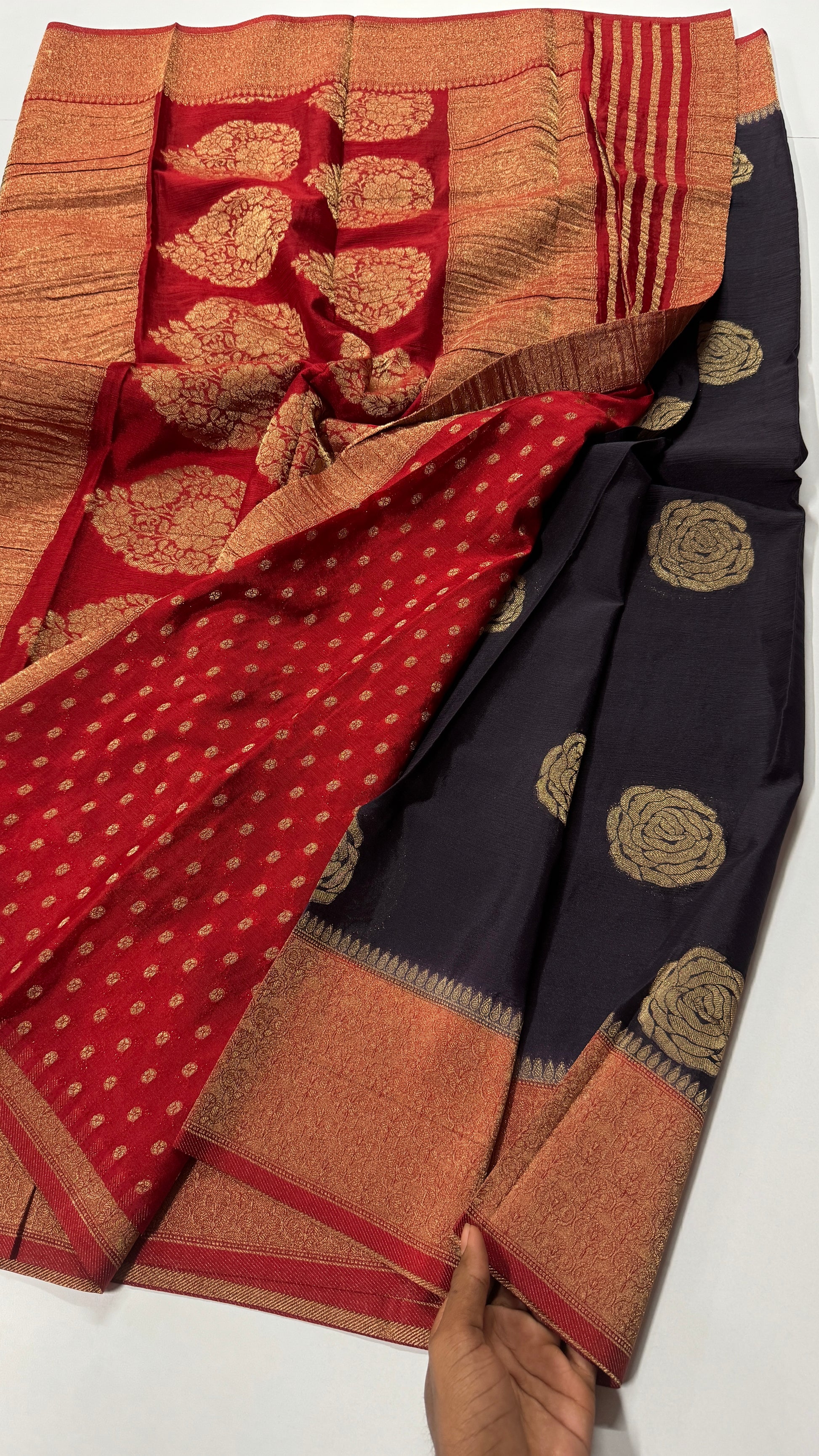 This Georgette Crepe Rose Butta Saree tells its own story with delicate buttas scattered like blooming roses, paired with a graceful border blouse that completes the look effortlessly.