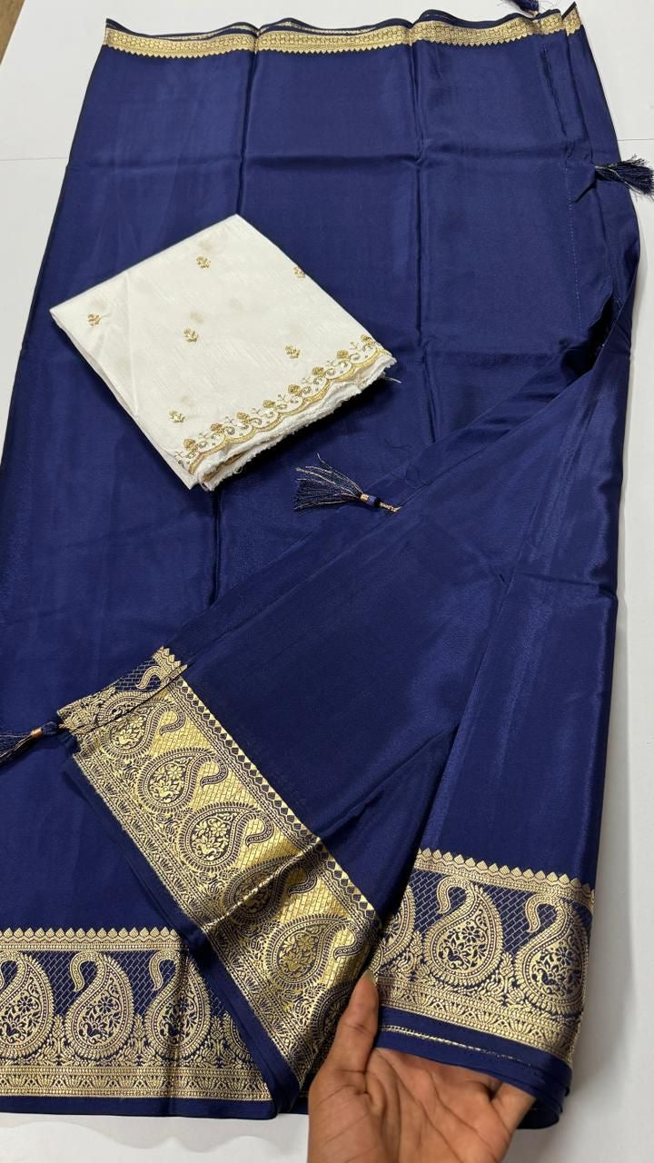Semi Mysore Crepe Silk with Mango Border 🍃