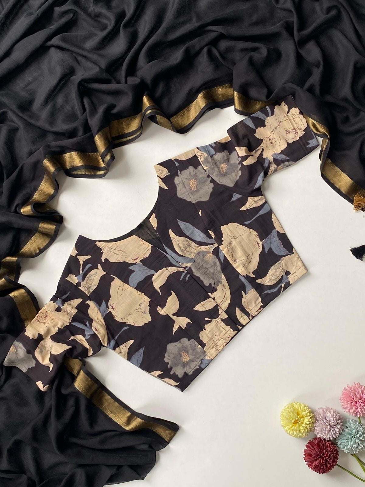 Soft Mul Cotton Saree paired with an exquisite Ajrak printed blouse