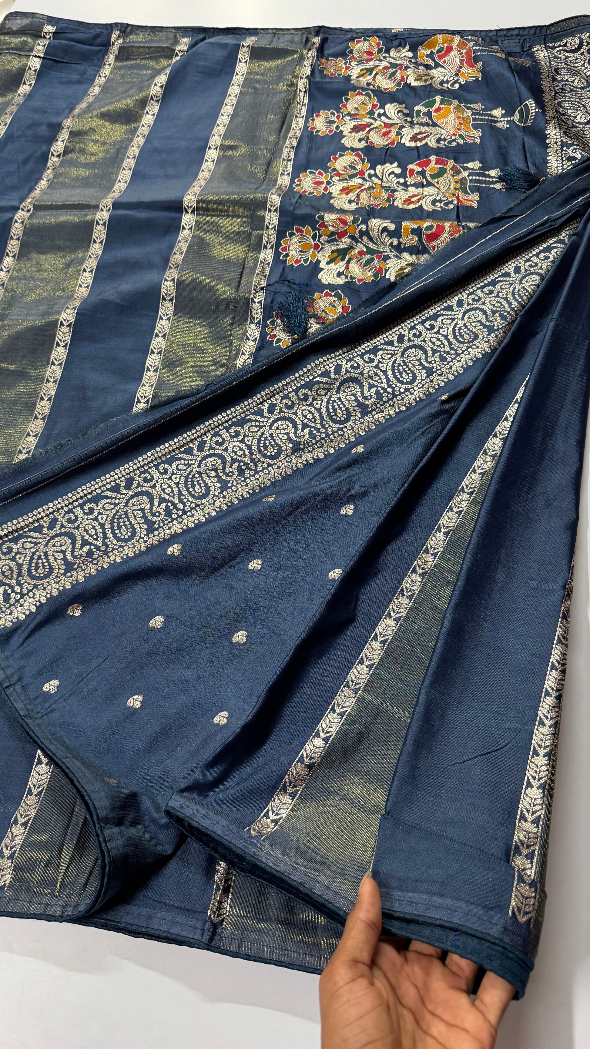 Experience the elegance of our Viscose Zari Woven Saree, featuring a grand, intricately designed pallu that exudes sophistication. Complemented by a beautifully crafted butta blouse with a detailed border, this ensemble is perfect for festive occasions or special celebrations. Priced at ₹1550 with free shipping across India. Note: Cash on Delivery is not available; prepaid orders only.